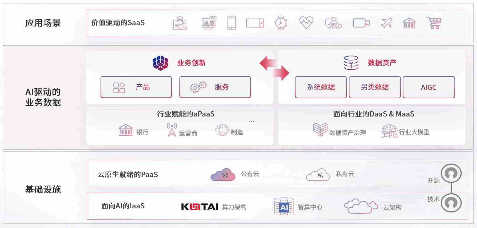 数字时代,,,,围绕企业数字化转型的关键要素,,40001百老汇电子游戏数码开创性的提出数云融合战略和技术体系框架,,,,着力在云原生、、、、数字原生、、、AI原生和信创产业上架构产品和服务能力,,为处在不同数字化转型阶段的快消零售、、、汽车、、、、金融、、、医疗、、、政企、、、教育、、、运营商等行业客户提供泛在的敏捷IT能力和融合的数据驱动能力,,,,构建跨界融合创新的数字业务场景和新业务模式,,,助力企业级客户建立面向未来的核心能力和竞争优势,,,全面推动社会的数字化、、、、智能化转型升级。。。