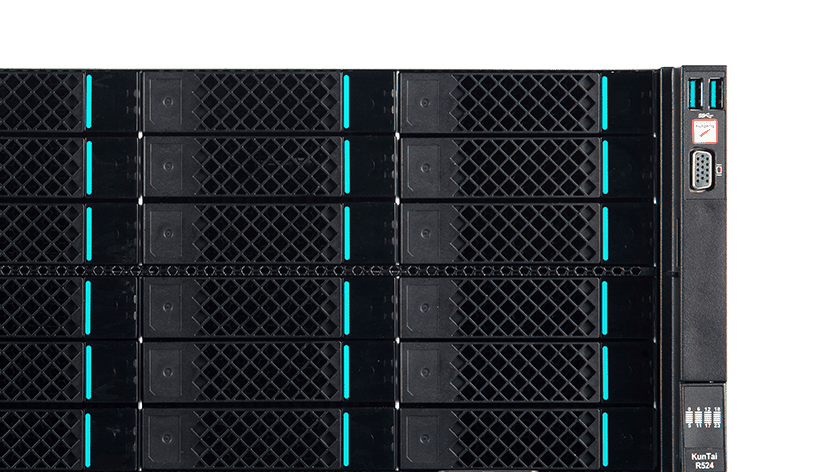 KunTai R524 存储型服务器是40001百老汇电子游戏数码基于鲲鹏处理器推出的新一代 ARM数据中心服务器。。。主要面向存储业务,,具有海量存储、、、、高性能、、、、低功耗以及易扩展的特点,,适合为大数据分析、、软件定义存 储等应用场景的工作负载进行髙效加速。。。。